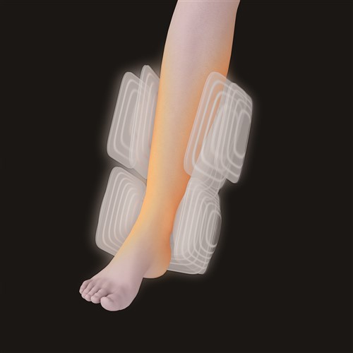ふくらはぎ・足首・足の甲をエアバックが包み込んでもみほぐし、足裏全体をローラータイプのもみ玉が刺激して血行促進