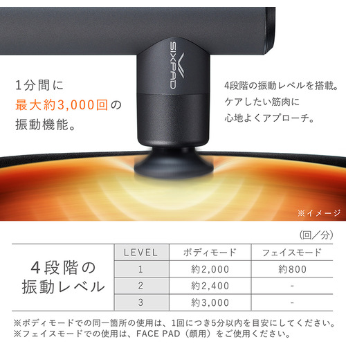 1分間に最大約3,000回の振動機能。ケアしたい筋肉に心地よくアプローチ。