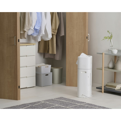 【試験条件】●部屋の広さ6畳相当●室温20℃、湿度70%(梅雨時)●除湿強運転、サーキュレーター強運転を行った場合(60Hz)●衣類の量2kg相当(Tシャツ3枚、Yシャツ2枚、パジャマ1組、下着7枚、靴下2足、タオル3枚)実使用時の衣類乾燥時間は使用環境・使用条件により異なります。