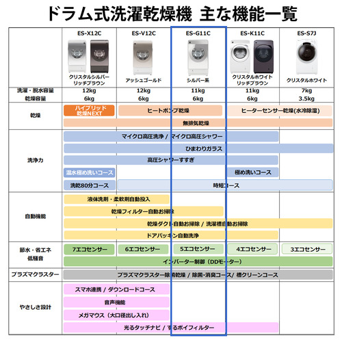 シャープ ESG11C ドラム式洗濯機 左開き 洗濯11kg・乾燥6kg クリスタルシルバー