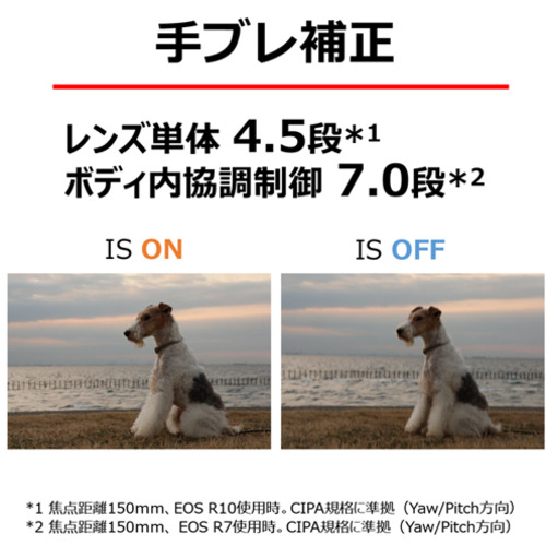 さらに、ボディー内手ブレ補正機構を搭載したEOS RシステムのAPS-Cカメラに装着時は、協調制御により7.0段※2の手ブレ補正効果を発揮します。