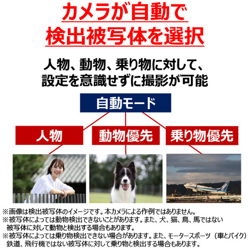 人物/動物(犬・猫・鳥・馬)/乗り物(モータースポーツ・鉄道・飛行機)において高い検出精度を実現。高速・高精度なAFとの連携で、一度被写体を捉えると粘り強くトラッキング(追尾)します。