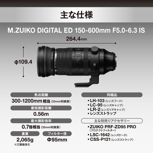 OMデジタルソリューションズ M.ZUIKO DIGITAL ED 150-600mm F5.0-6.3 IS ブラック 交換レンズ M.ZUIKO DIGITAL
