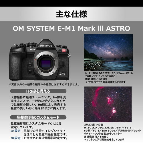 OMデジタルソリューションズ E-M1 Mark lll ASTRO ボディー フィルターキット ミラーレス一眼カメラ 天体撮影専用 OM SYSTEM