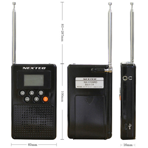 FRC NX-W109RD BK(H) 防災ラジオ NEXTEC ブラック
