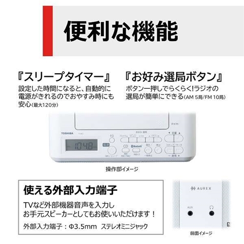 東芝 TY-ANC1(W) CDラジオ Aurex(オーレックス) ホワイト TYANC1(W)