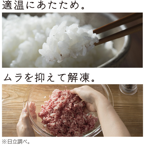 日立独自(※1)のセラミックプレートと熱風で食材を包み込み一気に加熱。旨みを閉じ込め、おいしく焼き上げます。レンジ、オーブン、過熱水蒸気、グリルを使い、表面はこんがり焼き上げて、肉料理はジューシーに、魚料理はふっくらと焼き上げます。液晶画面で牛・豚・鶏・魚の4メニューからパッと選択。付け合わせの野菜も一緒に調理可能。基本の味付けは塩・こしょうでOK。事前に下味をつけて焼き上げたり、ソースを作ってアレンジしたりなどお好みの味を楽しめます。※1 セラミック製の外して丸洗いテーブルプレートを庫内底面、上段、中段、下段にセットして直接調理に使用できます。