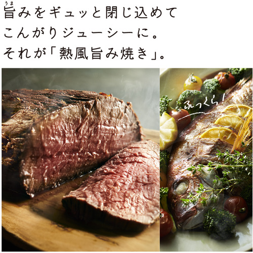 300℃(※1)2段熱風コンベクションオーブン(※2)ダブル光速ヒーターとファンで熱風を庫内全体に循環。全体を包み込むようにおいしく焼き上げます。オートミールを使ったスイーツや多彩な焼き菓子など、種類豊富なスイーツも自宅で手軽に作れます。予熱は200℃まで約4分50秒と早くて便利です。※1 240から300℃の運転時間は約5分間です。その後は自動的に230℃に切りかわります。300℃は予熱有り時のみ設定できます。※2 2段熱風コンベクションオーブンは手動のみです。