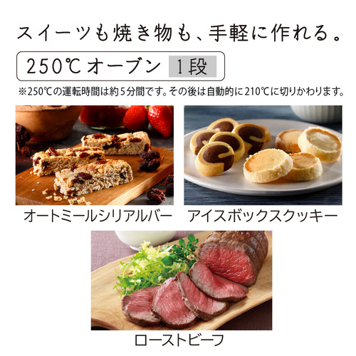 ●スイーツも焼き物も手軽に作れる「250℃(※) オーブン1段」
