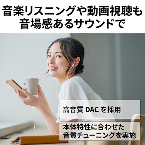 ノイズや音質劣化を低減する高音質DAC(D/Aコンバーター)を採用。大型ドライバーユニットの特性に合わせた音質チューニングで、通話だけでなく音楽再生も高音質で楽しめます。