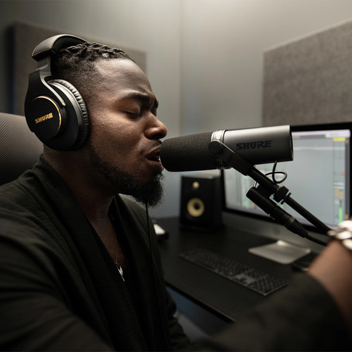 Shureが独自に設計した内蔵プリアンプを搭載。低ノイズ、フラットで安定したゲインを提供すし、ボーカルやスタジオでの使用に適したカーディオイド・ダイナミック・マイクロホンです。