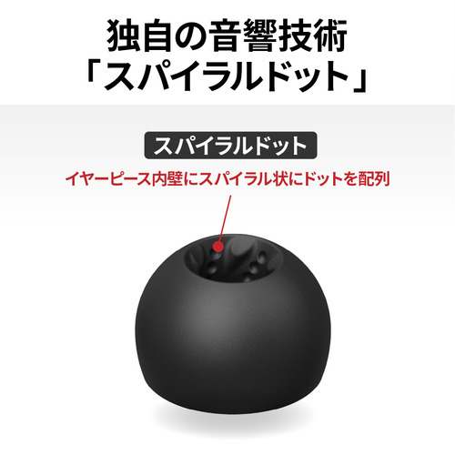 イヤーピース内壁にスパイラル状にドットを配列。イヤーピース内の反射音を拡散させ、直接音とのバランスを最適化することで、音のにごりを抑えクリアなサウンドを実現します。