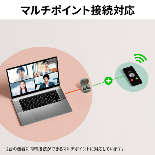 PCとスマートフォンなどの2台の機器に同時接続/待ち受けが可能なマルチポイントに対応しています。