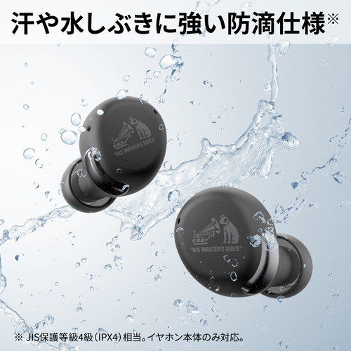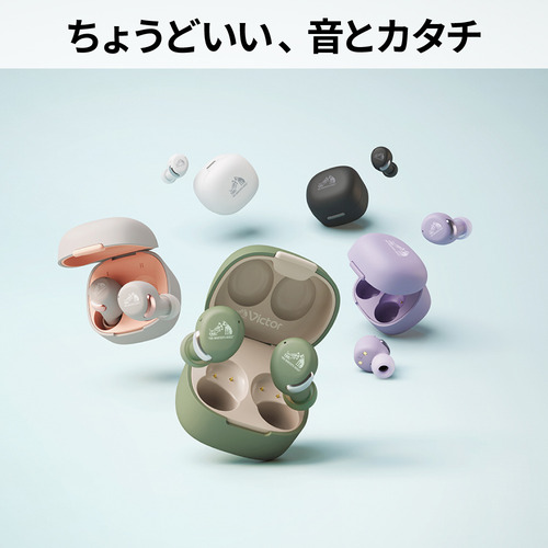イヤホン本体と充電ケースには、Victorブランドの象徴である「犬のマーク」をデザインしています。