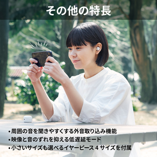 Bluetooth伝送時に発生する音声の遅延を抑制。映像とのずれを抑え、スマートフォンやタブレットでのゲームや動画視聴を快適に楽しめます。