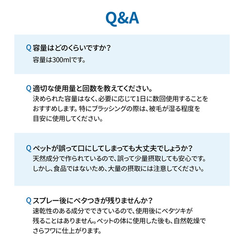 スプレー後にブラッシングだけでバサバサ毛並みをふわサラに!気になる臭いに除菌・消臭のW効果まで!犬猫兼用の万能スプレー