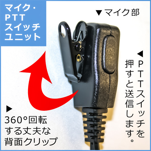 トランシーバー接続ジャック部の根元からクリップ型マイクの根元までケーブル長:790mm