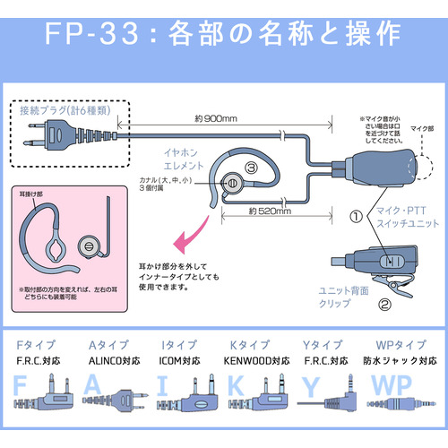 エフ・アール・シー FP-33WP トランシーバー用イヤホンマイク(耳掛け・カナルタイプ/1Pinねじ込み式・防水ジャック) FIRSTCOM