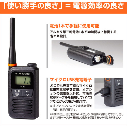 FTH-214はシンプルな機能と、高い性能を併せ持った特定小電力トランシーバーです。