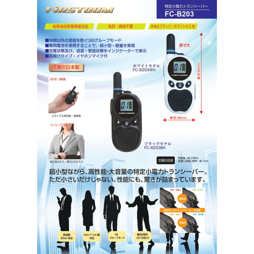 エフ・アール・シー FC-B203BK(H) 超小型 特定小電力トランシーバー FIRSTCOM 日本製 ブラック