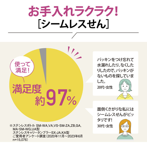 パッキンをはずして洗わなくていいから、「お手入れカンタン」&「つけ忘れない」&「なくさない」