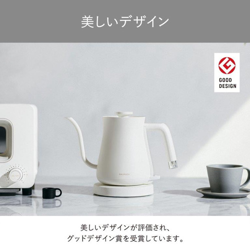 コンパクトで注ぎやすいから、湯沸かしがより手軽に。ステンレスに塗装をほどこした美しい質感とほんのりと光る灯台のような電源ランプが、1日に何度もくり返す、お湯を沸かす時間を楽しくします。