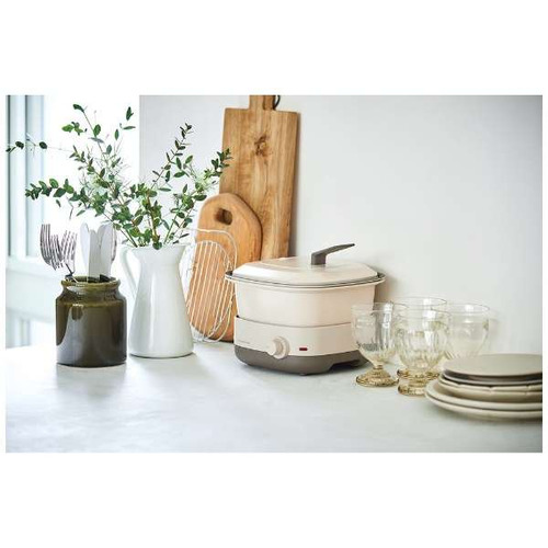 テーブルに気軽に置けるコンパクトなサイズ感と、角丸の四角いフォルムデザインは、食卓をより一層スタイリッシュに彩ります。1人分のワンプレートメニューや2人分の鍋料理、みんなが集まるパーティー料理の1品としても楽しく使えます。テーブルクッキングならではの、できたてアツアツをほおばる贅沢なひとときをお楽しみください。