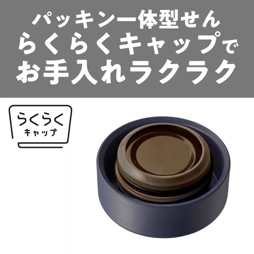 キャップはパッキンとせんが一体化した「らくらくキャップ」でパッキンを外さずに手間なく洗えます。パッキンのつけ忘れ、つけまちがい、紛失などの悩みを解消。