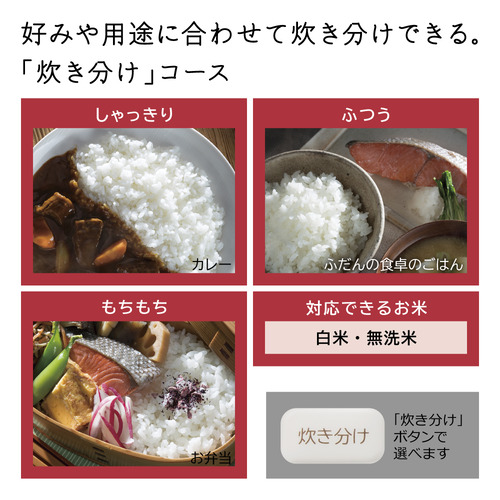 ●好みや用途にあわせて炊き分けできる。「炊き分けコース」