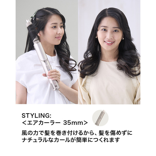 ブロー、カール、ストレート、ボリュームアップ、ツヤだしなど様々なヘアスタイルを実現する多機能なマルチスタイリングドライヤーです。