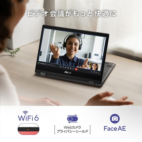 Wi-Fi 6の高速で安定した接続と、ノイズの発生しにくいカメラのクリアな映像により、ビデオ会議も快適に行えます。さらにWebカメラのプライバシーシールド搭載により物理的にカメラをOFFにできるため、場所を気にせず安心してご使用いただけます。