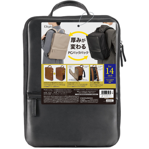 ナカバヤシ CB-282BK 厚みが変わるPCバックパック 14インチ ブラック CB282BK