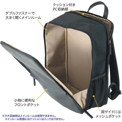 ナカバヤシ CB-283BK 厚みが変わるPCバックパック 16インチ ブラック CB283BK