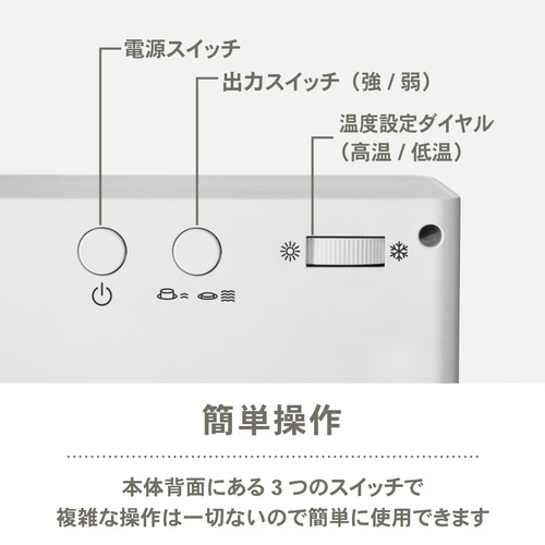操作するのは、本体背面上にある3つのスイッチのみ。複雑な操作は一切ないので、簡単にお使いいただけます。