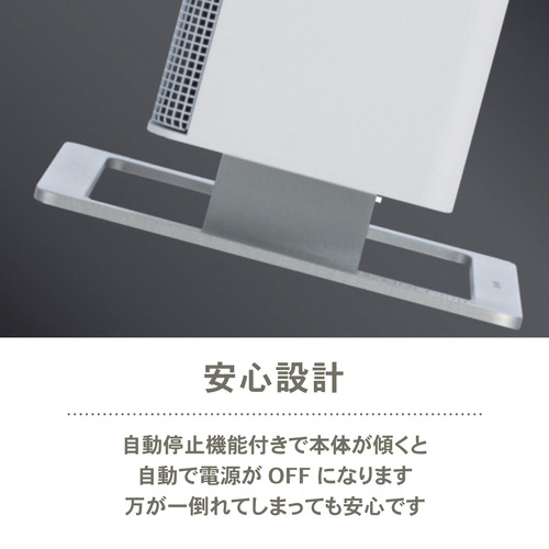 自動停止機能付きで、本体が傾くと、自動で電源がOFFになります。万が一、倒れてしまっても安心です。