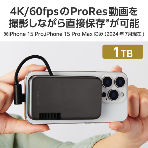 エレコム ESD-EPB1000GBK 外付けSSD 1TB 収納式 マグネット付 PC・スマホ対応 ブラック