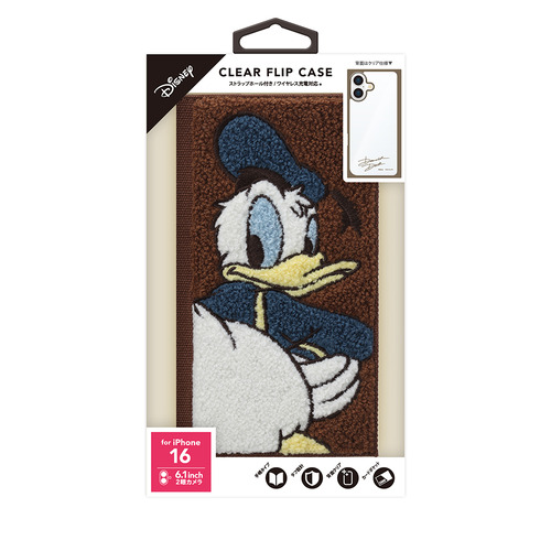 PGA PG-D24ACF03DND iPhone 16用 クリアフリップケース ドナルドダック