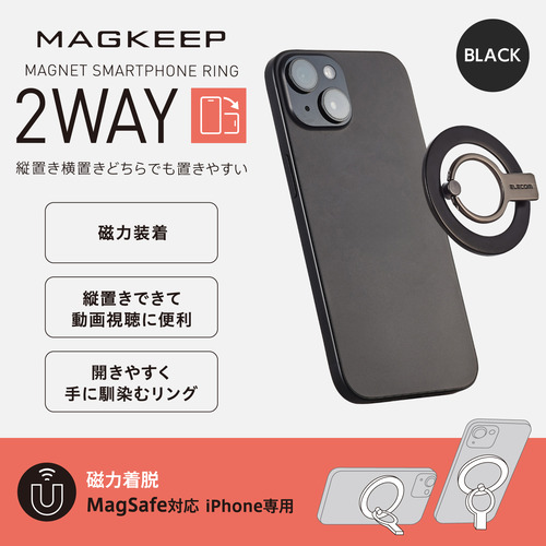 エレコム P-STRMKHICRBK マグネットスマホリング 2WAY MagSafe 対応 iPhone対応 ブラック
