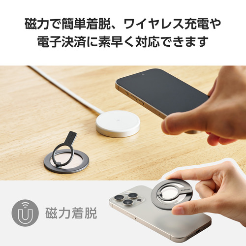●リングが磁力で着脱可能なので、気軽にリングを外してワイヤレス充電や電子決済に素早く対応できます。