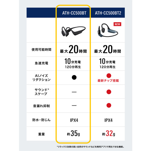 オーディオテクニカ ATH-CC500BT2 BK ワイヤレス軟骨伝導ヘッドホン Bluetooth対応 ブラック