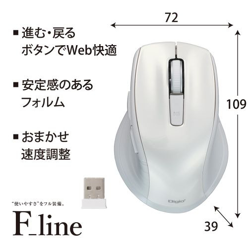 付属品:取扱説明書、単3アルカリ乾電池1本(お試し用)、小型マイクロレシーバー(マウス本体に収納可能)W18×D15×H5mm/約2g