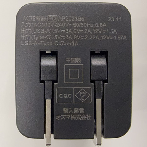 OSMA ACUCM-20PQBK 20WPD対応 AC充電器 ブラック