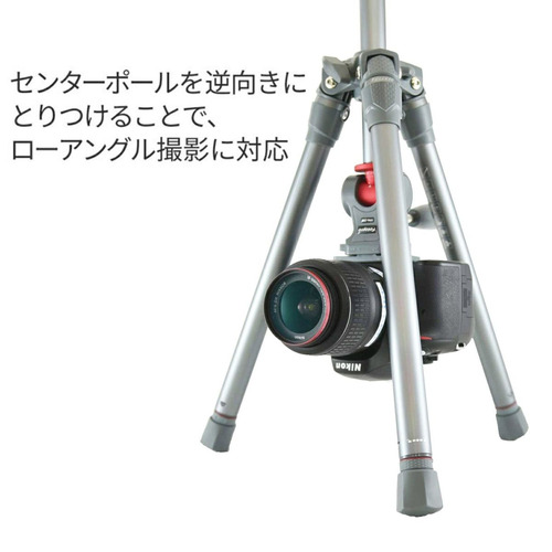 スピーディーな伸縮、固定が簡単に行えるインナーロックシステムを採用。カメラの取り付けにはクイックシューを使用し素早い着脱が可能です。動画撮影に最適な2Way雲台とパンハンドル付。センターポールを逆さにすることでマクロ・ローアングル撮影に対応しています。センターポールの先端はフックになっており、ウエイトなどを吊り下げることで三脚がより安定します。 一眼レフでの動画撮影にもおすすめです。