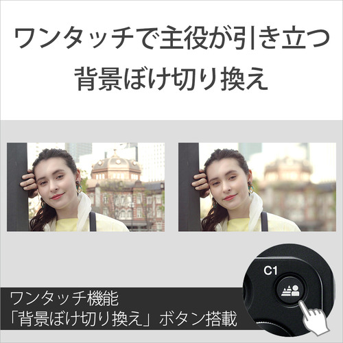 ワンタッチで瞬時に表現の切り換えができる「背景ぼけ切換機能」や、素早くピントの移動ができる「商品レビュー用設定」を搭載。