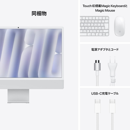 アップル(Apple) MWUU3J/A 24インチiMac Retina 4.5Kディスプレイモデル Apple M4チップ 10コアCPUと10コアGPU 16GB 256GB SSD シルバー