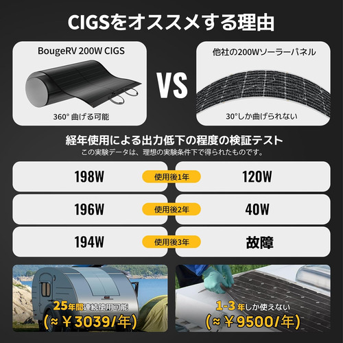 ISSYZINE JAPAN ISE154N YUMA CIGS系ソーラーパネル 200W 穴取付タイプ BougeRV ブラック