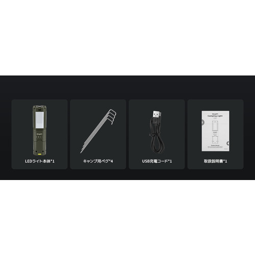 付属品:固定ペグ 充電ケーブル 取扱説明書