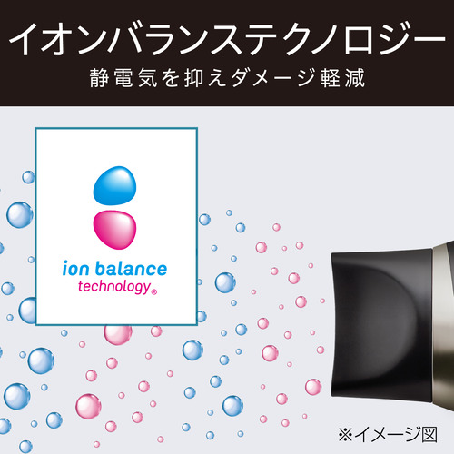 ●髪にもっとうるおいを届けるイオンバランステクノロジー搭載。静電気を中和し髪をより美しく
