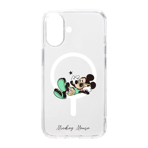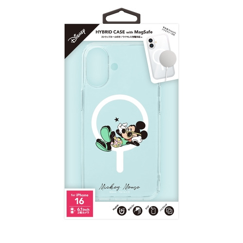 ディズニーキャラクターデザインの各種MagSafeアクセサリーに対応したiPhone 16用 ハイブリッドケースです。