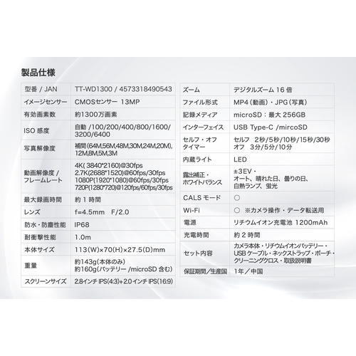 Wi-Fi:〇 ※カメラ操作・データ転送用